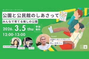 ランチタイムトーク毎月開催中!3月は3/5(木)「公園と公民館のしあさって」