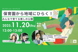 みんなの公園愛護会のオンライントークイベント「みんなで育てる … 続きを読む イベントレポート:保育園から地域にひらく! ランチタイムトーク