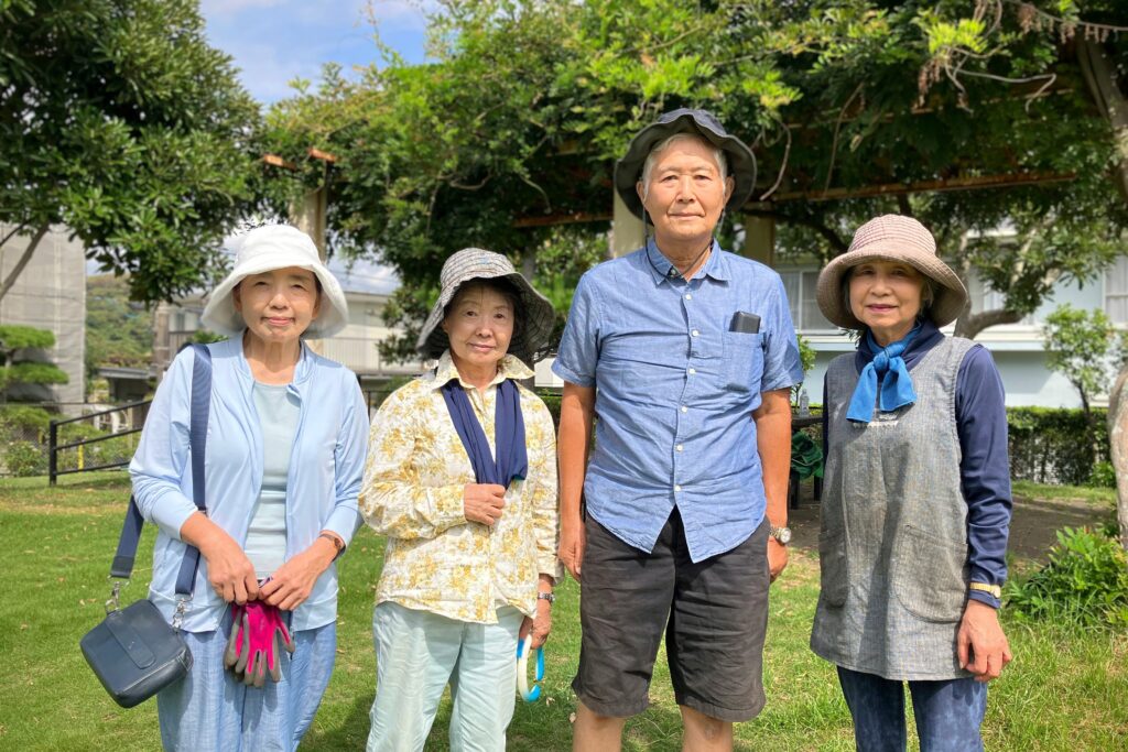 こちらの公園で活動をされているのは、七里ガ浜東二丁目公園愛護会のみなさんです。会長の村谷宏三さん、小野澤純子さん、佐藤真由美さん、須藤冨ゐさんほか、メンバーのみなさんにお話をお聞きしました。
