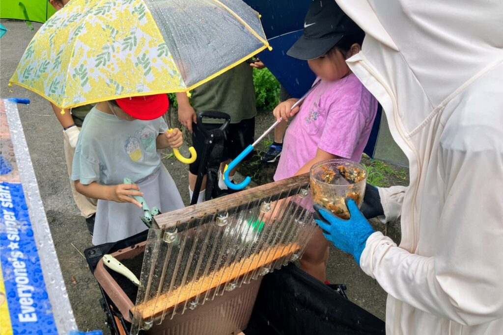 後半、降り出した雨が強くなり、傘をさしながらの体験となりましたが、みなさんそれぞれにいくつかの体験をして「地域のためにできること」の学びが体感として広がったのではないでしょうか。