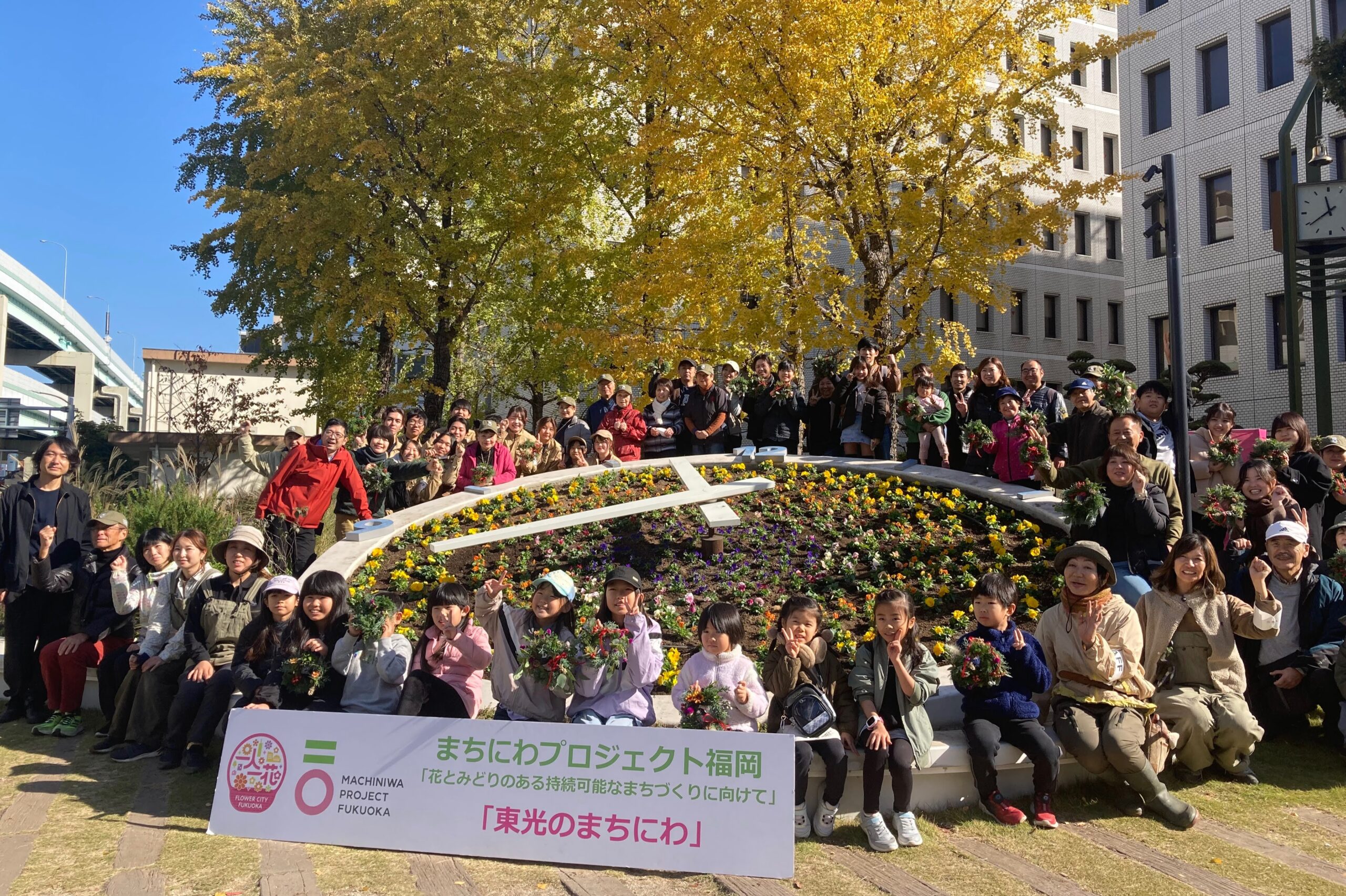 ご紹介するのは、市が所有する道路の緑地帯(植樹帯)を、民間企業が資金を出して整備し、行政・大学・地域住民が一体となって花壇活動を行っている先進的な事例、「東光のまちにわ」の皆さんです。12月に開催され、多くの笑顔で賑わった「オータムフェス」のイベントにおじゃましました。
