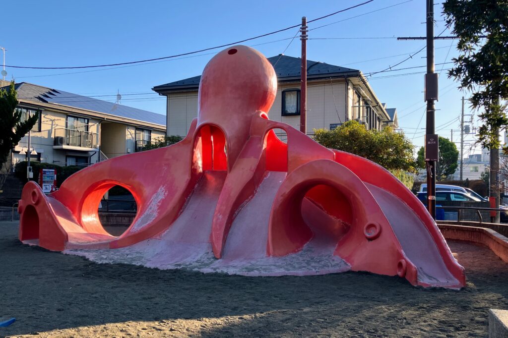 (タコ公園と呼ばれる橘公園のシンボル、タコ!)