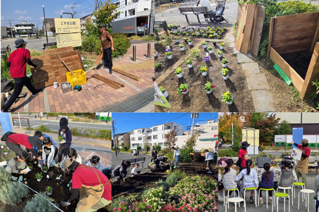 「公園で、できたらいいな!」を応援する市の公園活動サポート窓口を通して、公園花壇の担い手不足の課題を持っていたこすぎ公園と、堆肥を活用して花壇づくりがしたいこんぽすと部の想いがつながり、循環型花壇の管理モデルとしての活動がスタートしました。(LINEで気軽に問い合わせができるという「公園活動サポート窓口」については、また改めて取材したいと思います!)