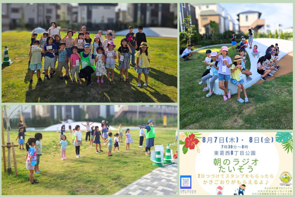 (東葛西八丁目公園「はち公」での朝のラジオ体操イベントの様子:写真提供 江戸川区)