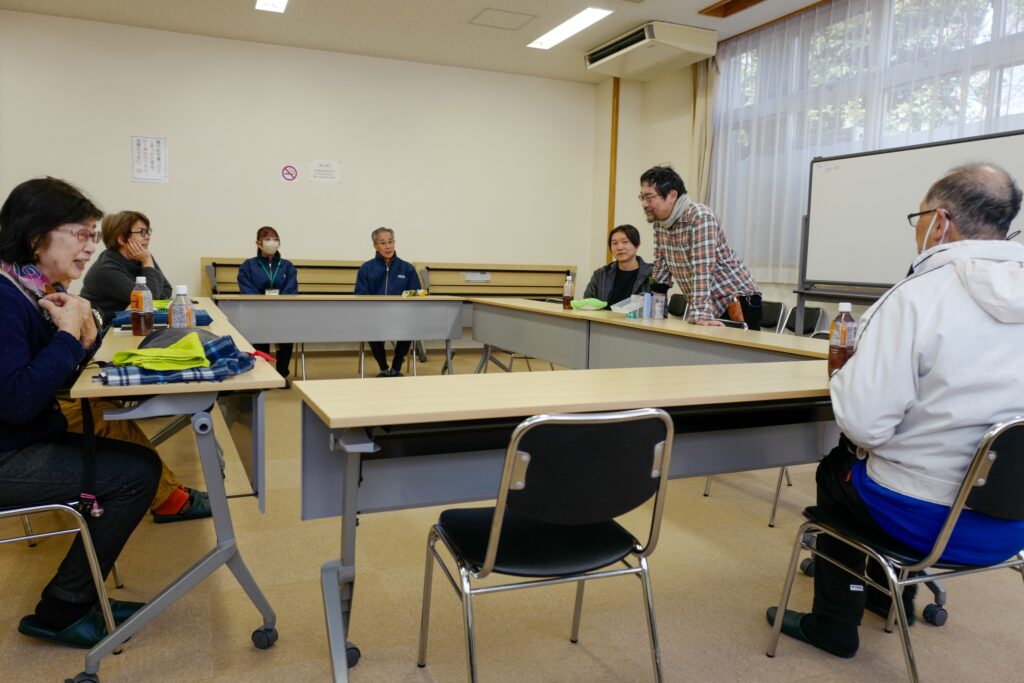 (清掃作業後、近くの区民集会所でミーティング。参加者みんなの発言を促しながら、丁寧に合意をとって今後の予定を決めていました)