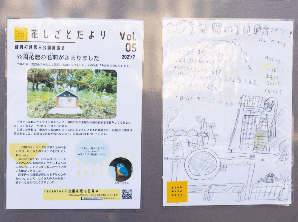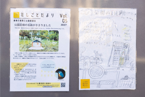 椛田 公園内の掲示やお知らせも素敵なんですよね。植物の情報や活動の様子を紹介する「花しごとだより」や、ゴミ持ち帰りのサインとか。